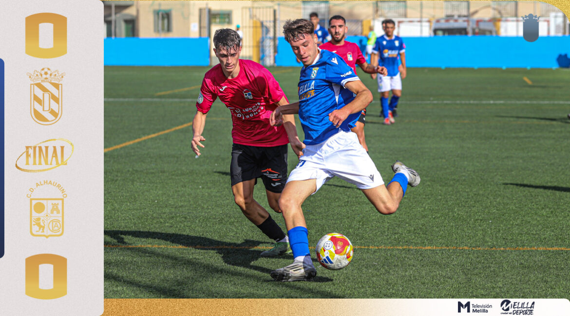 El segundo tiempo el guión de partido fue diferente. Nada más iniciar la segunda parte, Óscar sacó sus reflejos para despejar un disparo lejano del rival. Los alhaurinos tuvieron más protagonismo de balón, pero sin generar peligro en el área azulina. Pasada la hora de juego, se destacó la solidez defensiva azulina sobre su área. Los visitantes comenzaban a tener ocasiones, siendo Óscar vital para que el balón no esté debajo de la red. De hecho, en el minuto 70’ y 90’ el meta melillense sacó a lucir sus guantes con grandes estiradas. Por lado del ataque azulino, los jugadores remaron para conseguir el gol, pero los centros laterales y el remate de Escobar no fueron suficientes para batir la portería del meta alhaurino.