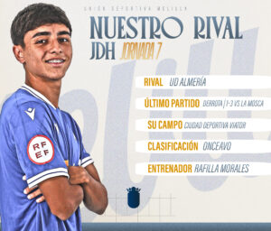 El rival de esta semana será la UD Almería juvenil. Los de Rafilla Morales están en onceava posición con una victoria, dos empates y tres derrotas en su casillero. El último precedente de liga los indálicos perdieron por 1-3 frente a la UD La Mosca. Abraham Lázaro es su referencia en ataque con tres goles en la liga.