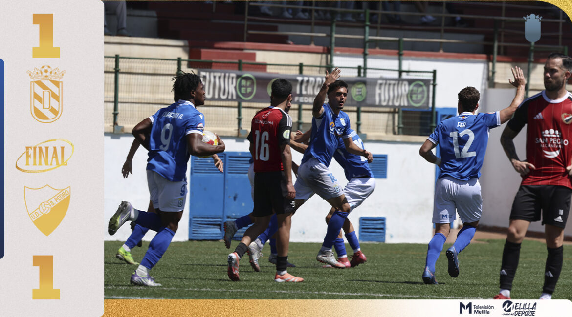 La UD Melilla B empató a uno frente al UD San Pedro en un partido que merecieron más los locales. Lucharon hasta el final y con este resultado “ganan” el goalaveraje particular. Después del día de descanso de mañana, la vista está puesta en el encuentro del domingo frente al Mancha Real.