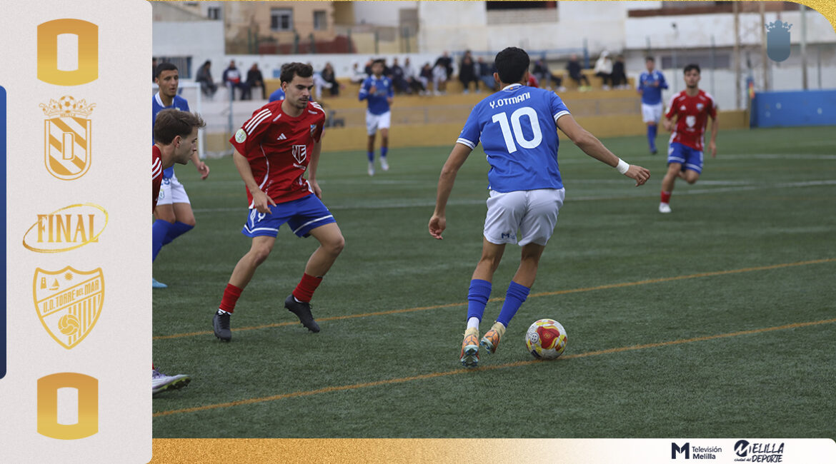 La primera parte fue un tanteo entre azulinos y torreños. Los melillenses fueron dominadores en área rival, pero no encontraban ese último pase o ese disparo para poner en apuros a la portería rival. Un primer tiempo en que los azulinos fueron a más con las internadas por bandas, pero el gol se hacía de rogar.