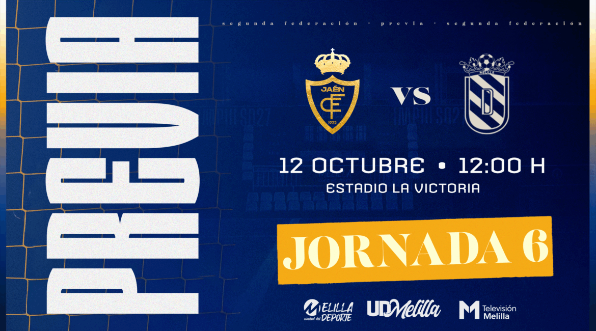 Este encuentro, correspondiente a la jornada 6 del grupo IV de Segunda RFEF, medirá este domingo 12 de octubre, a partir de las 12:00 horas en el estadio de La Victoria, al Real Jaén CF y UD Melilla. El encuentro será dirigido por el extremeño José Antonio Muñoz y podrá seguirse en directo a través del canal Youtube del conjunto jienense y Televisión Melilla.