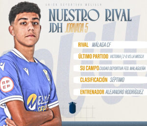 El rival para la jornada 5 del grupo IV de División de Honor Juvenil será el Málaga CF. El conjunto boquerón está en la séptima posición con siete puntos (2V, 1E, 1D). En su último choque liguero logró la victoria por 2-0 frente a la Mosca. Mora y Perea anotaron los dos goles del encuentro en el 95’ y 97’.