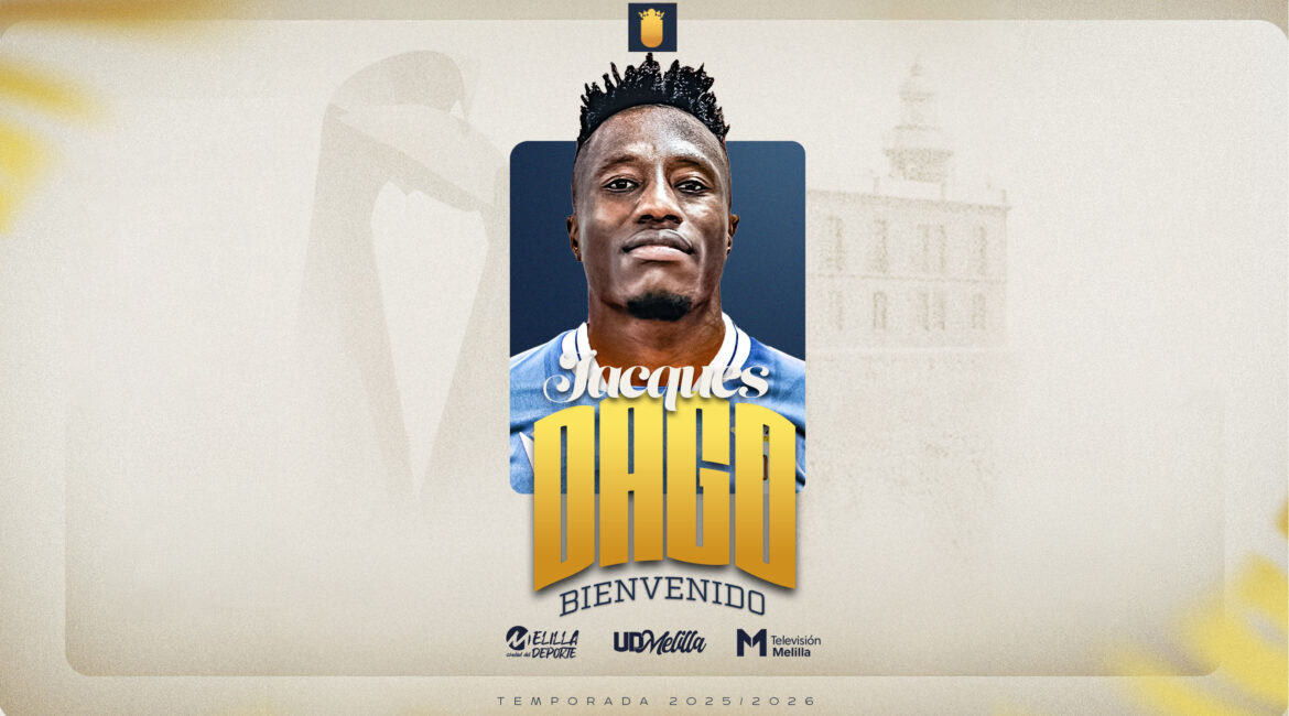 La Unión Deportiva Melilla informa que Jacques Dago defenderá la elástica azulina esta próxima temporada, tras el acuerdo alcanzado entre club y jugador. El delantero costamarfileño llega procedente del CD Estepona, donde el pasado curso anotó siete goles.