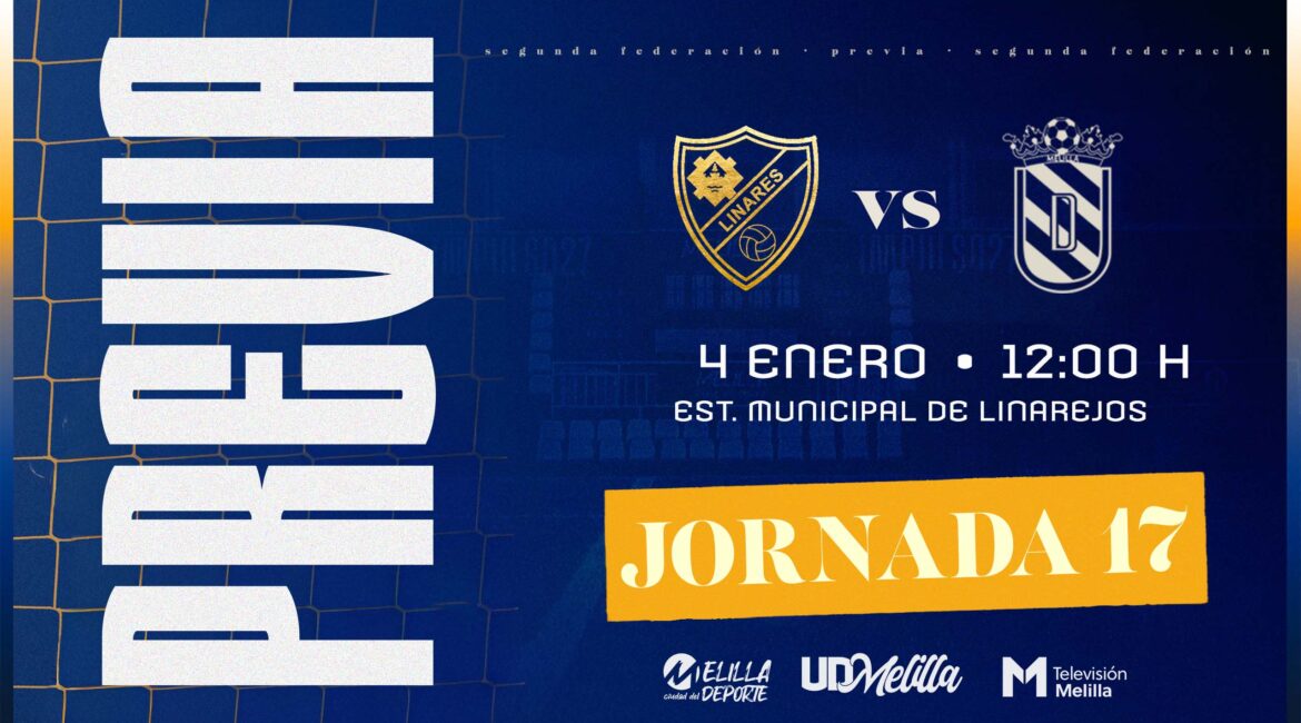 Este encuentro, correspondiente a la jornada 17 del grupo IV de Segunda Federación y última de la primera vuelta, medirá este domingo 4 de enero, a partir de las 12:00 horas en el estadio municipal de Linarejos al Linares Deportivos y Unión Deportiva Melilla. El partido, que será dirigido por el colegiado ceutí Antonio Pozo, podrá seguirse en directo a través de Televisión Melilla.