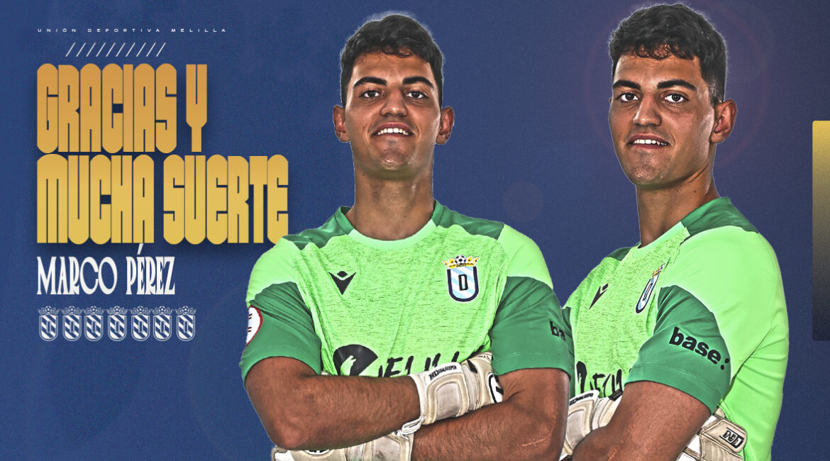 La UD Melilla comunica el acuerdo alcanzado con Marco Pérez para poner fin al contrato que los unía. El jugador almeriense defendió la portería unionista en tres ocasiones. Desde la entidad azulina deseamos a Marco la mejor de las suertes tanto a nivel profesional como a nivel personal.